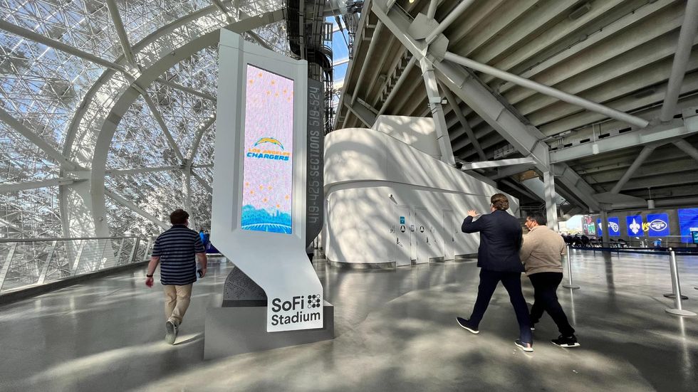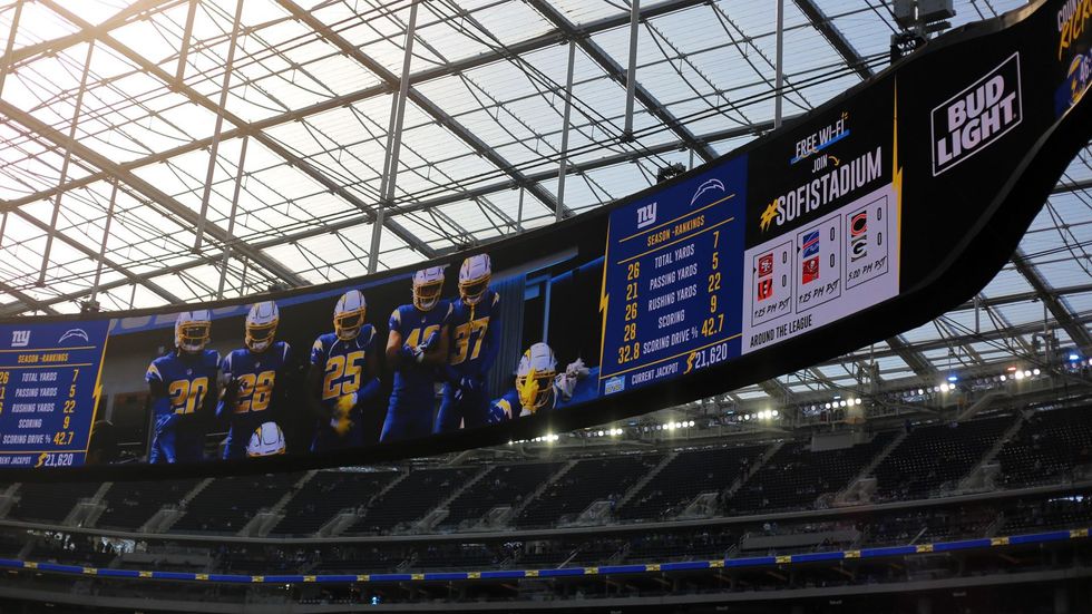 The 3.1 million-square-foot behemoth in Inglewood is a state-of-the-art technological marvel, featuring a 70,000-square-foot video board (dubbed the “Infinity Screen”), lightning-fast Wi-Fi and a massive LED canopy. SoFi Stadium relies solely on digital displays for everything from advertising to concession stand menus; that also comes in handy since the arena has two NFL tenants, the Rams and the Chargers, and can easily rotate their branding according to who’s playing that day.