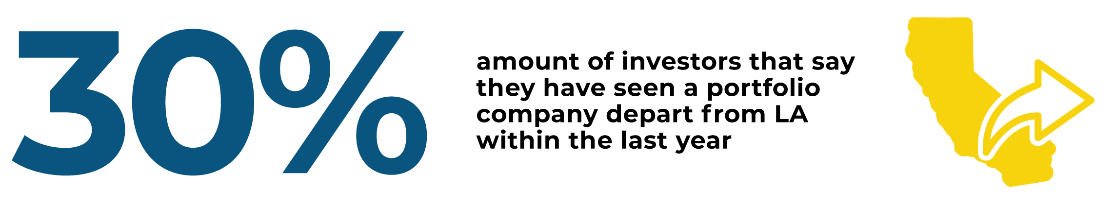 Los Angeles was heralded as the third-largest startup ecosystem in the U.S. at the beginning of the year, behind only San Francisco and New York. Yet nearly one-third (31%) of VC respondents said that at least one of their portfolio companies had left L.A. within the past year. It won’t come as a huge surprise that the city of Austin, Texas has been one of the prime beneficiaries of this shift—with roughly half of those who reported that a portfolio company had left L.A. identifying Austin as the destination.