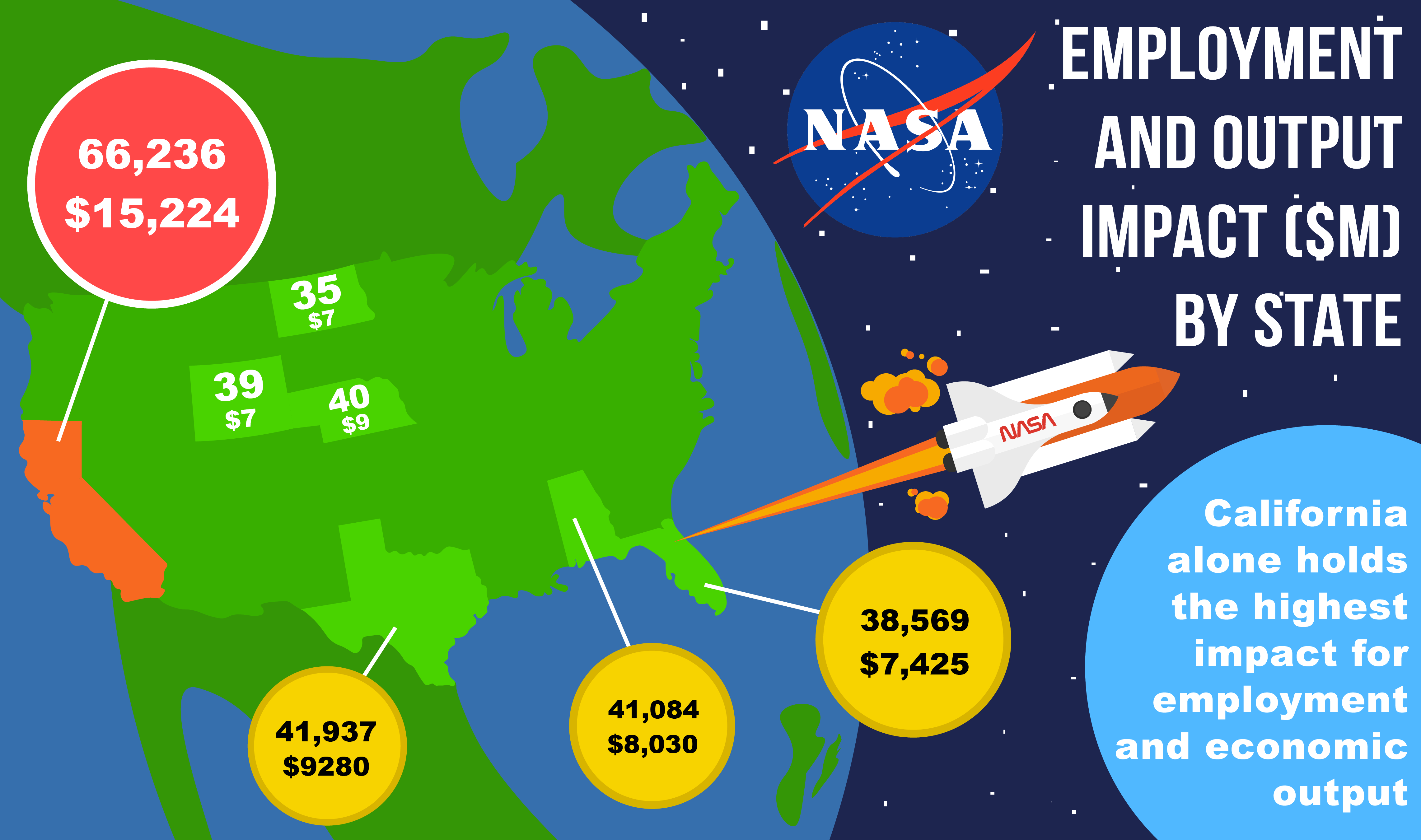 California remains a hotspot for NASA space activity and investment. In 2021, the agency estimated its economic output impact on the region to be around $15.2 billion. That was far more than its closest competing states, including Texas ($9.3 billion) and Maryland (roughly $8 billion). That same year, NASA reported it employed over 66,000 people in California.