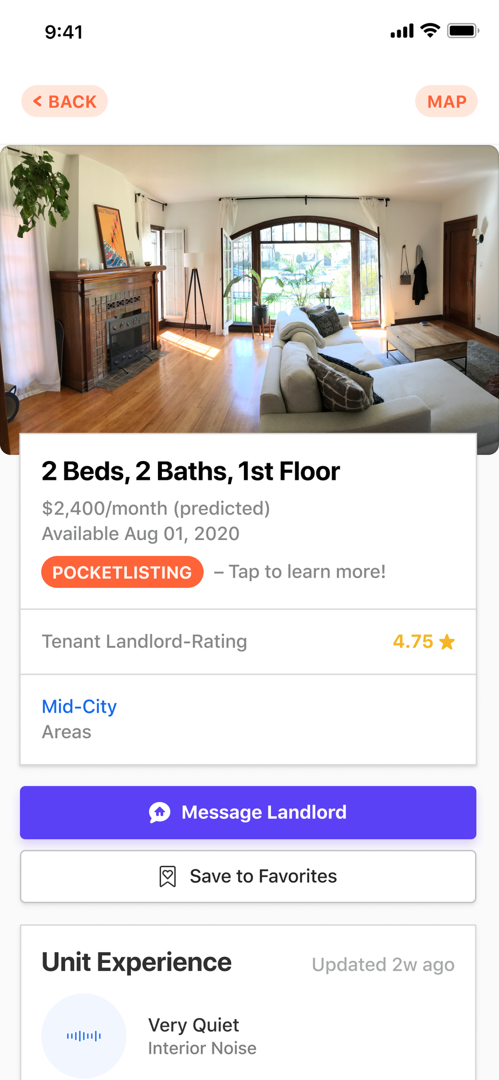 The app provides data such as how much sunlight a room receives or how responsive a landlord is. It also allows would-be renters to keep their names, numbers and other personal information private until they're ready to rent.
