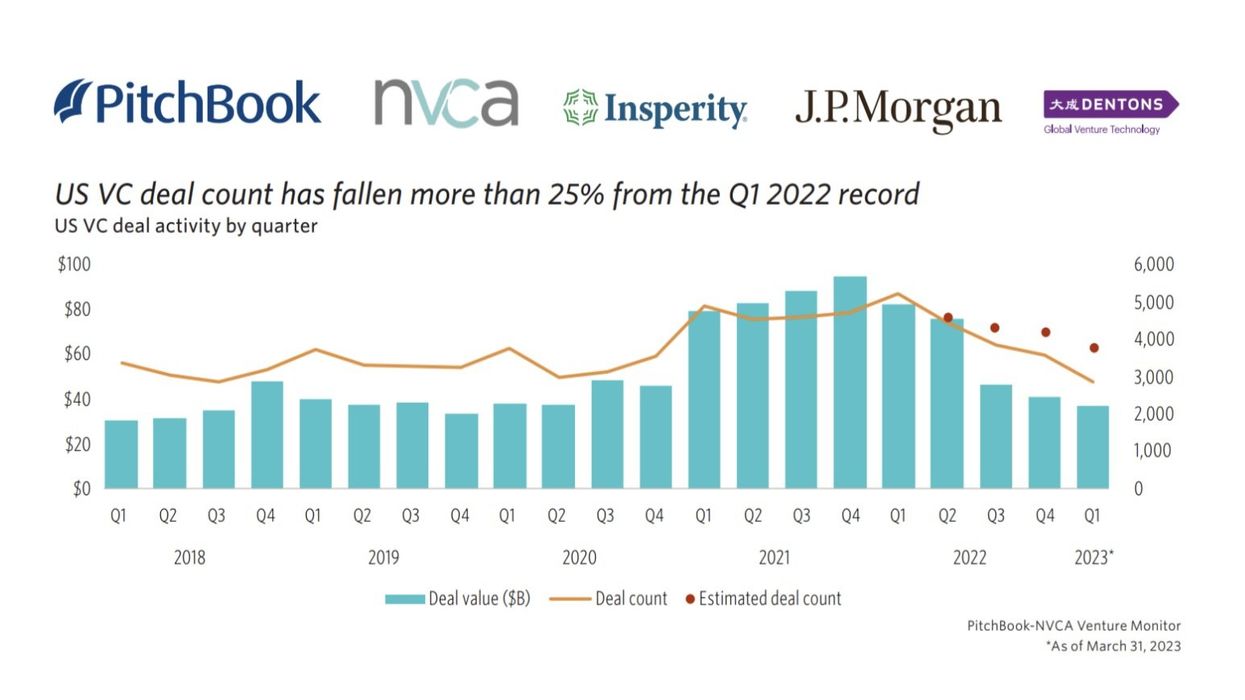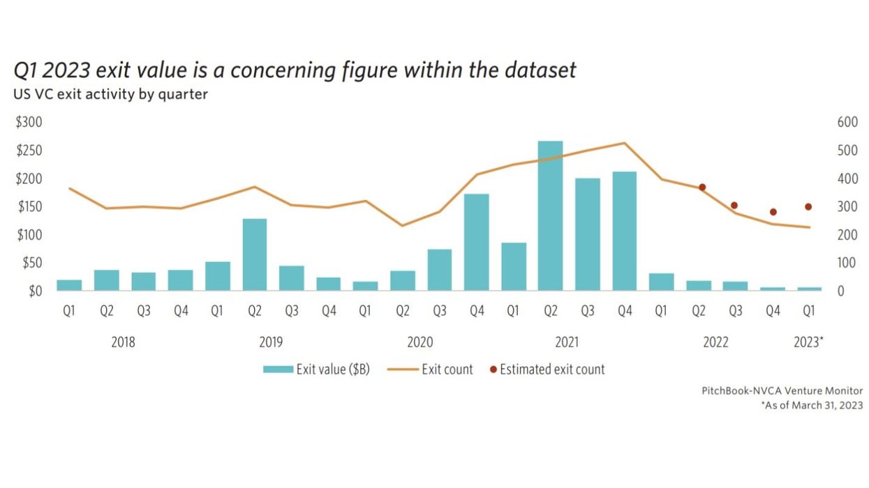 PitchBook Data, an analytics service that publishes quarterly reports on the American venture capital community, found that VC fundraising, overall deal count and exit value in the first quarter of this year are all trending downward.