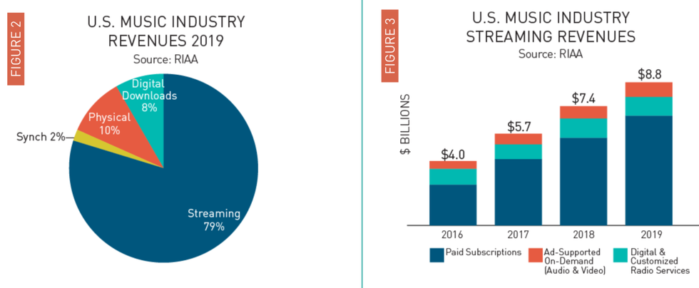 Image from The Recording Industry Association of America's report on year end revenues for 2019.